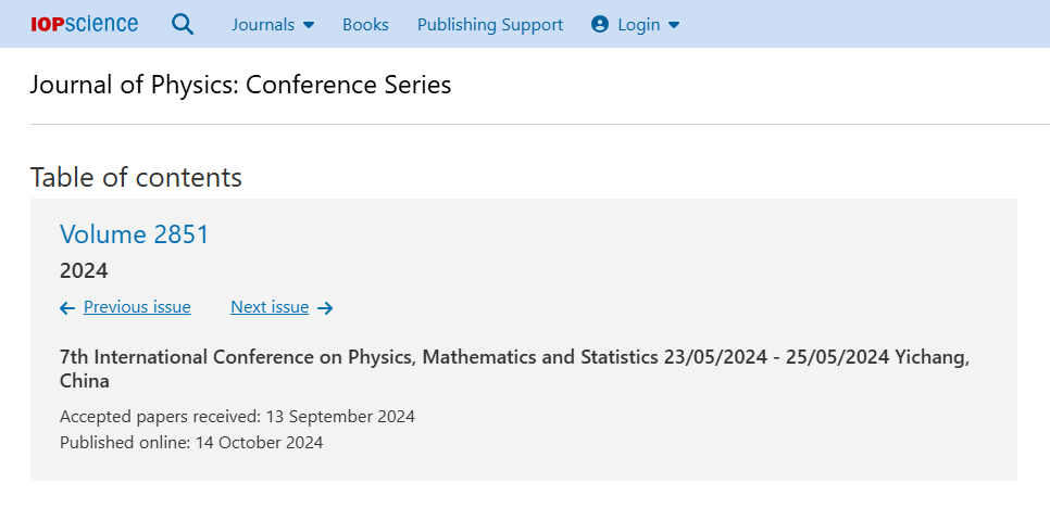 Conference proceedings: Journal of Physics: Conference Series (https://iopscience.iop.org/issue/1742-6596/2851/1)
